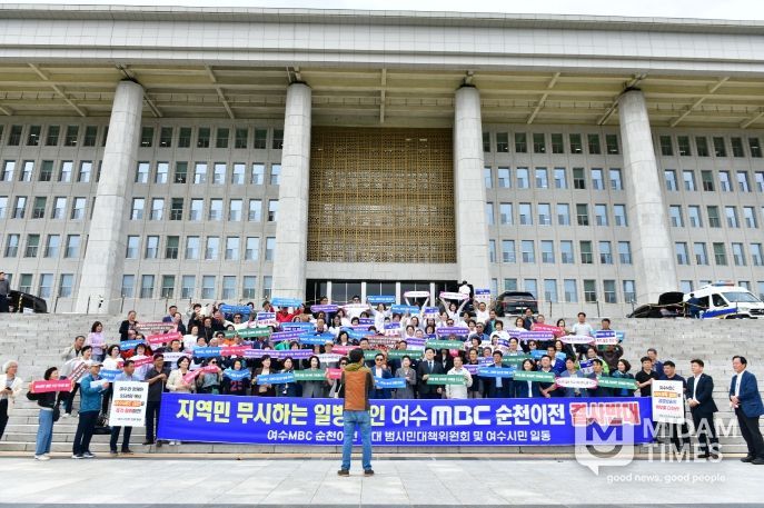 미담타임스 정인화 기자 | 여수시의회는 10월 14일 MBC본사와 국회에 항의 방문하며 여수MBC 순천 이전 철회를 강력히 촉구했다.