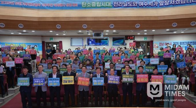 미담타임스 김준완 기자 | 여수시는 지난 14일 진남문예회관에서 ‘2026년 유엔기후변화협약(UNFCCC) 기후주간(Climate Week)’ 국내 개최 후보지 선정을 기념하는 행사를 열고 유치를 위한 의지를 다졌다.