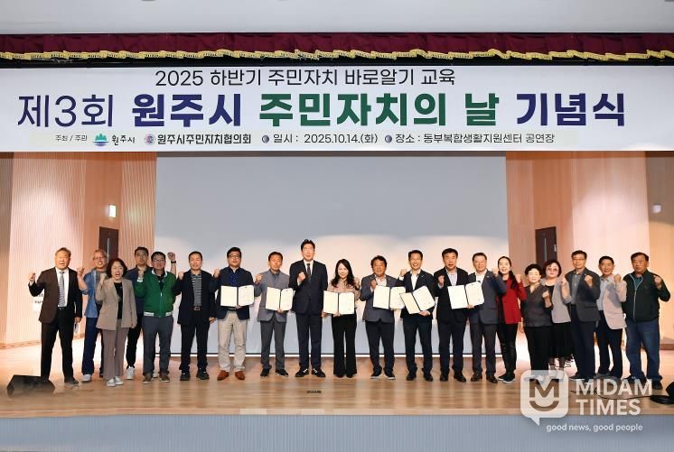미담타임스 정인화 기자 | 원주시와 원주시주민자치협의회는 지난 14일 동부복합생활지원센터 공연장에서 ‘제3회 원주시 주민자치의 날 기념식’을 개최했다.