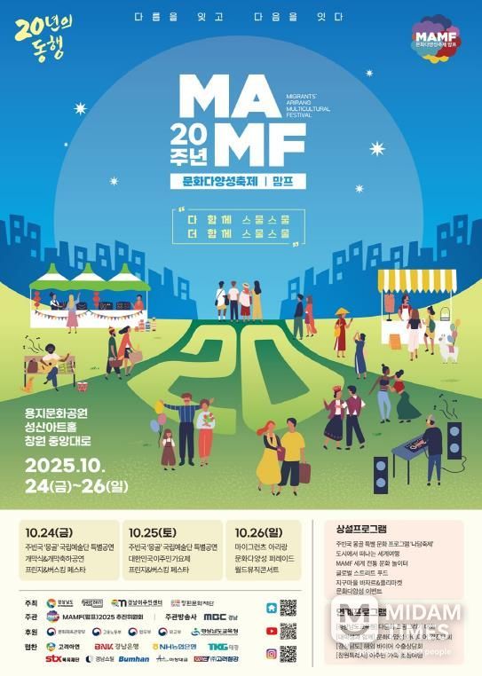 MAMF(맘프)는 이주민과 함께하는 국내 최대 규모의 문화다양성 축제로, 올해 20주년을 맞았다. ‘All Together More Together’, ‘다 함께 스물스물 더 함께 스물스물’이라는 슬로건에는 문화다양성과 우리 사회가 함께 걸어온 시간을 돌아보며 앞으로 공존, 포용, 지속가능한 미래를 꿈꿔가자는 메시지가 담겨있다.