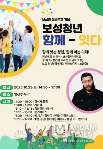 ‘보성 청년 함께-잇다’ 프로그램에서는 김철우 보성군수와 지역 청년이 소통하는 ‘청바지(청년이 바라는 지금의 보성)’, 청년들의 성취를 격려하는 ‘청년어워즈’, 방송인 노홍철과 함께하는 ‘토크콘서트’가 마련된다.