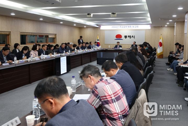 미담타임스 정인화 기자 | 동해시는 10월 16일 시청 2층 회의실에서 '2026년 주요업무계획 보고회'를 개최했다.
