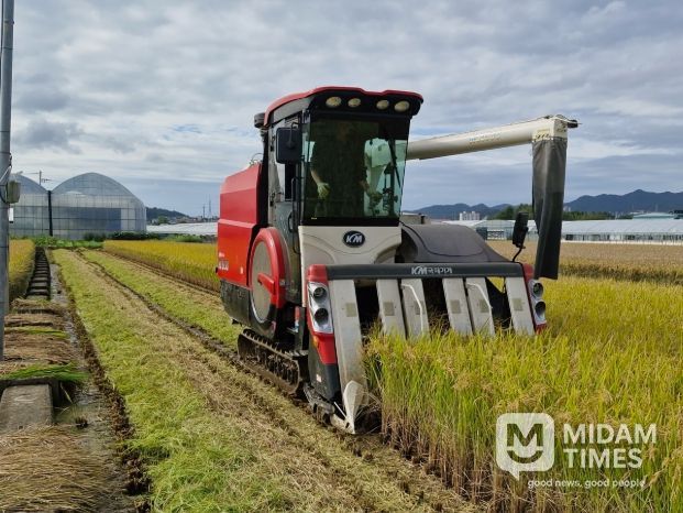 미담타임스 김교환 기자 | 고성군은 10월 15일 고성읍 죽계리 435-230에 위치한 벼 병해충 예찰포에서 벼를 수확했다고 밝혔다.