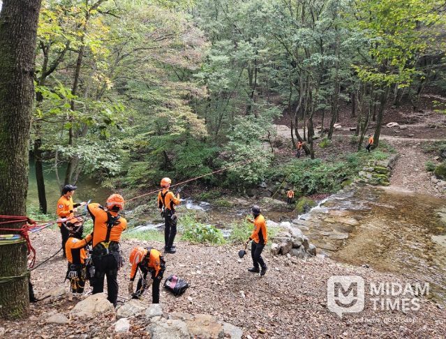 미담타임스 김준완 기자 | 김천소방서는 10월 17일 황악산 일원에서 산악사고 발생 시 현장 대응 능력 향상을 위한‘산악사고 인명구조 특별훈련’을 실시했다.