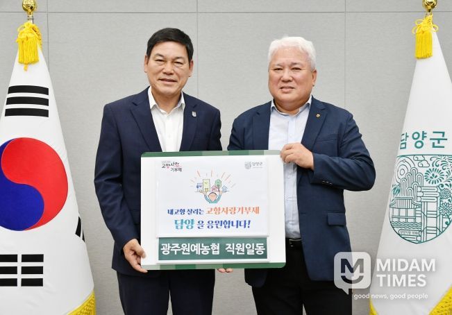 미담타임스 정인화 기자 | 담양군은 17일 광주원예농협(조합장 정일기)이 임직원들과 함께 고향사랑기부제를 통한 지역 나눔에 동참했다고 밝혔다.