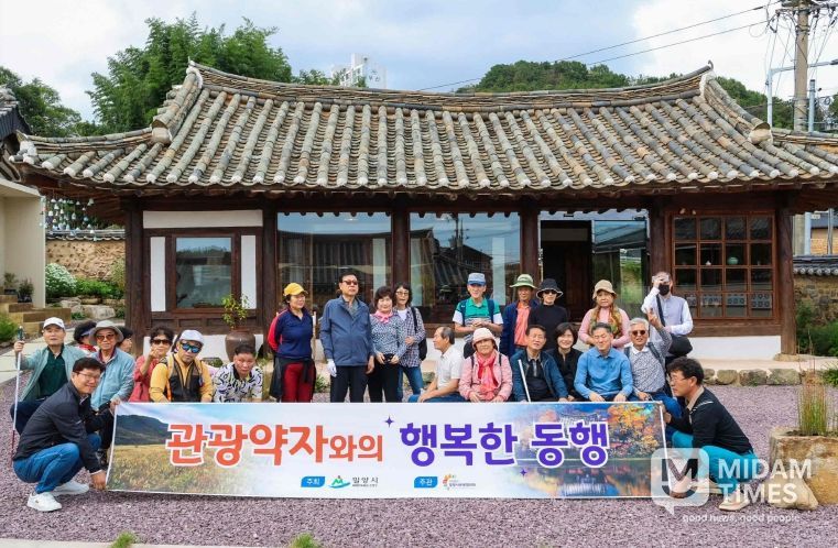 미담타임스 김교환 기자 | 밀양시 관광협의회(회장 손정태)는 관광 약자를 위한 특별한 힐링 프로그램 ‘관광 약자와의 행복한 동행’을 개최했다고 20일 밝혔다. 이번 프로그램은 대구 지역 시각장애인 등산 동호회 회원 30여 명을 초청해, 가을 정취가 가득한 밀양의 자연과 문화를 함께 체험하는 뜻깊은 행사로 진행됐다.