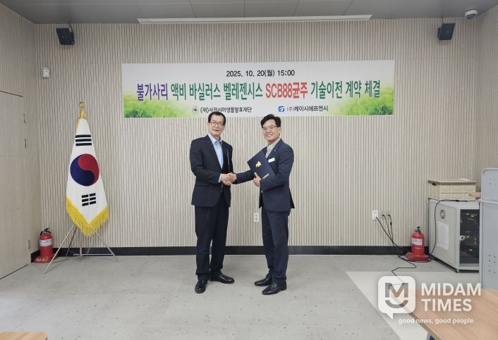 미담타임스 김교환 기자 | (재)사천시미생물발효재단은 주식회사 케이시에프엔시(경기도 용인시 소재)와 “불가사리 액비 생균제에 활용되는 바실러스 벨레젠시스 SCB88 균주”에 대한 기술이전을 체결했다고 20일 밝혔다.