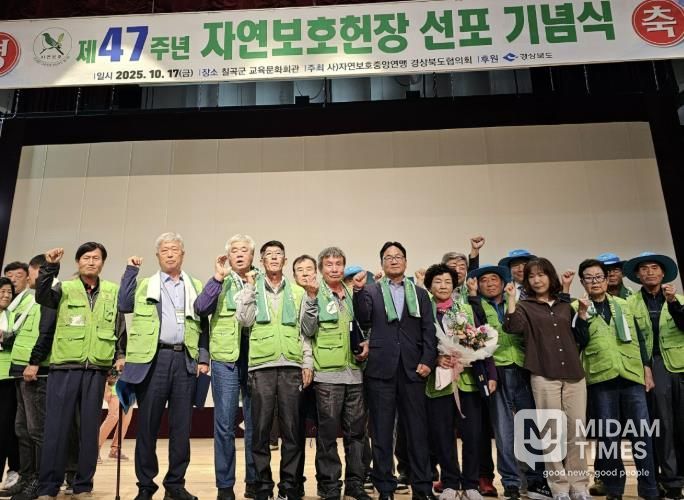 미담타임스 김준완 기자 | 상주시자연보호협의회 회원 3명이 10월 17일 ‘제47주년 자연보호헌장 선포 기념식’에서 환경보전에 기여한 공로를 인정받아 표창을 수상했다.