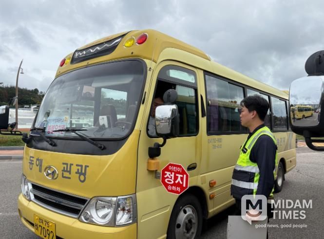 미담타임스 김준완 기자 | 영덕교육지원청은 2025년 10월 21일 영덕군민운동장 주차장에서 영덕경찰서, 한국교통안전공단과 합동으로 2025년 하반기 어린이 통학버스 합동 안전점검을 실시했다.