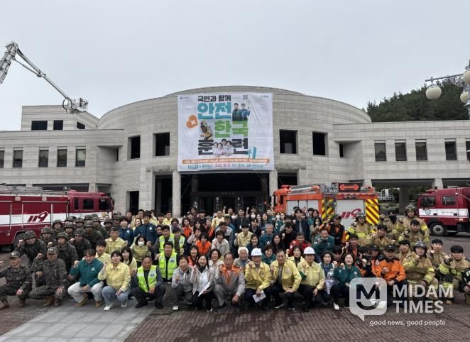 현장에는 펌프차, 사다리차, 구급차, 전기복구차, 굴삭기 등 21대의 다양한 장비가 투입됐으며, 연막탄을 활용해 실제 재난 현장과 유사한 상황 연출로 참가자들의 몰입도를 높였다.