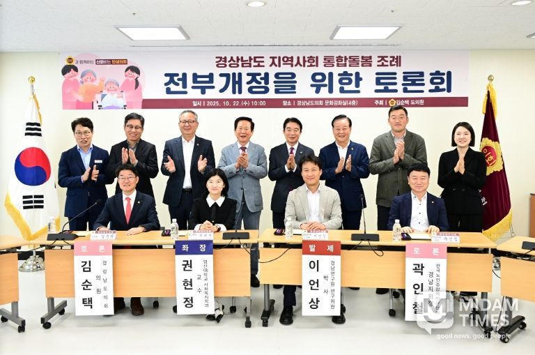 미담타임스 공한별 기자 | 경상남도의회 김순택 의원(국민의힘, 창원15)은 22일 도의회 문화강좌실에서 '경상남도 지역사회 통합돌봄 조례' 전부개정을 위한 토론회를 개최했다.