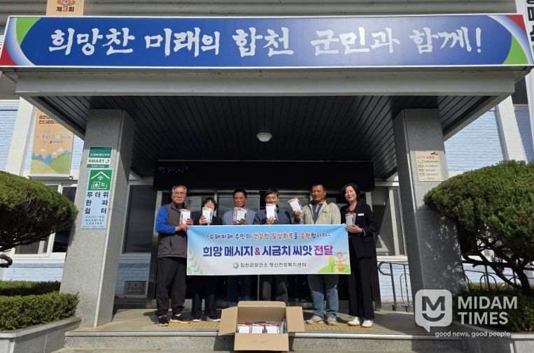 미담타임스 김교환 기자 | 합천군은 10월 22일, 정신건강의 날(10월 10일)을 맞아 정신건강 홍보주간행사 ‘마음의 씨앗 심기 캠페인’을 통해 모인 응원엽서와 시금치 씨앗을 수해 피해가 컸던 가회·삼가·용주면에 각각 전달했다.