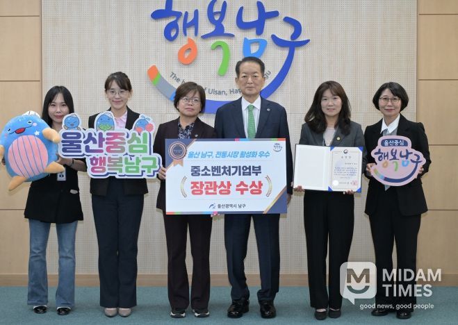 미담타임스 김준완 기자 | 울산 남구는 전통시장 활성화에 기여한 공로를 인정받아 2025년 전통시장 활성화 유공 지방자치단체 부문 ‘중소벤처기업부 장관상’을 수상했다고 22일 밝혔다.