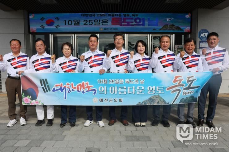 미담타임스 공한별 기자 | 예천군의회는 24일, 독도의 날을 맞아 군의회 전정에서 의원과 의회사무과 직원이 참가한 가운데 독도사랑 캠페인을 가졌다.