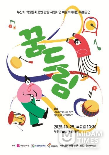 미담타임스 김교환 기자 | (재)부산문화회관(대표이사 차재근)은 오는 10월 29일, 평소 공연관람 기회가 적은 부산지역 학교 밖 청소년들을 위한 특별공연 어릴적예(藝) '꿈드림' 공연을 개최한다.