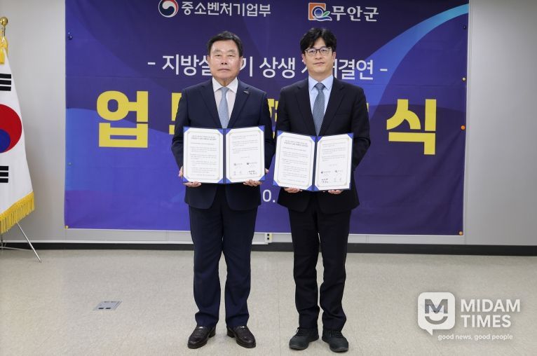 중소벤처기업부 한성숙 장관을 대신해 협약식에 참석한 박종찬 광주·전남지방 중소벤처기업청장은 “이번 자매결연은 단순한 형식이 아닌 실질적인 지역경제 회복과 지방소멸 위기를 극복하고 지역주민 삶의 질 향상에 기여하는 계기가 될 것”이라며, “앞으로도 무안군과 긴밀히 협력해 지역 상생 모델을 확산하겠다”고 밝혔다.