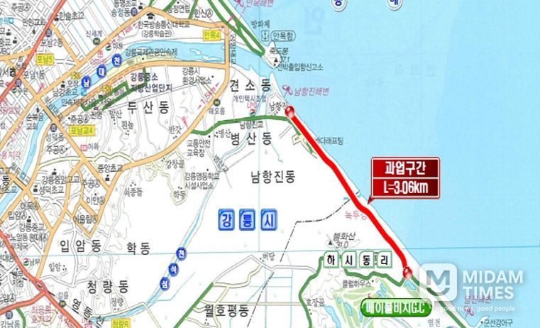 이번 사업은 강릉시 해안선 전체(총 64.5㎞) 중 마지막으로 단절된 3㎞ 구간(남항진~안인)을 연결하는 사업으로, 총사업비 477억 원이 투입된다.