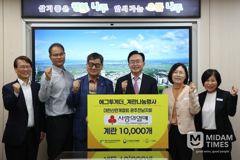 한편 나주시가 기탁받은 계란은 지역아동센터와 노인복지관 등 관내 사회복지시설에 전달될 예정이다.