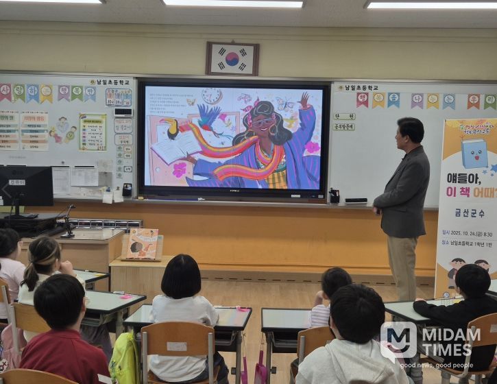 미담타임스 정인화 기자 | 박범인 금산군수는 지난 24일 남일초를 방문해 학생들과 함께 그림책 읽는 시간을 가졌다.