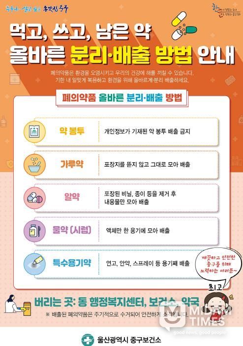 미담타임스 김준완 기자 | 울산 중구보건소가 지역 내 약국, 보건소, 동(洞) 행정복지센터 등 96곳에 폐의약품 수거함을 설치해 운영한다.