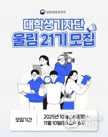 미담타임스 조혜리 기자 | 대한민국의 문화예술·콘텐츠·체육·관광 소식을 취재하고 널리 알릴 대학생기자단 울림 21기를 모집합니다.