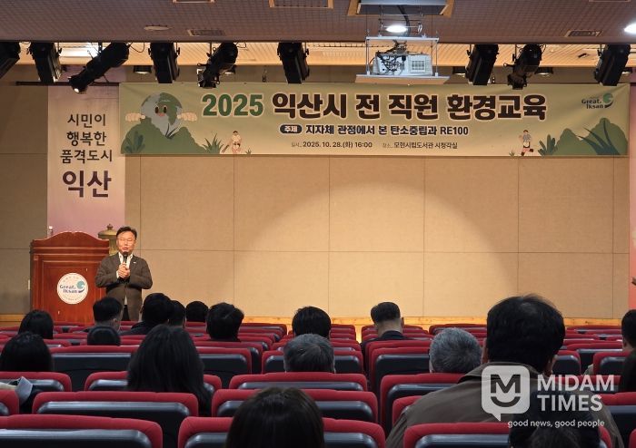 익산시는 28일 모현도서관 시청각실에서 '지자체 관점에서 본 탄소중립과 RE100'을 주제로 공무원 환경교육을 진행했다.