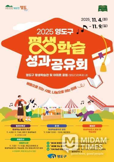 미담타임스 김교환 기자 | 부산시 영도구는 오는 11월 4일부터 9일까지 영도구 평생학습관과 아미르공원 일원에서 ‘2025 영도구 평생학습 성과공유회’를 개최한다고 밝혔다.