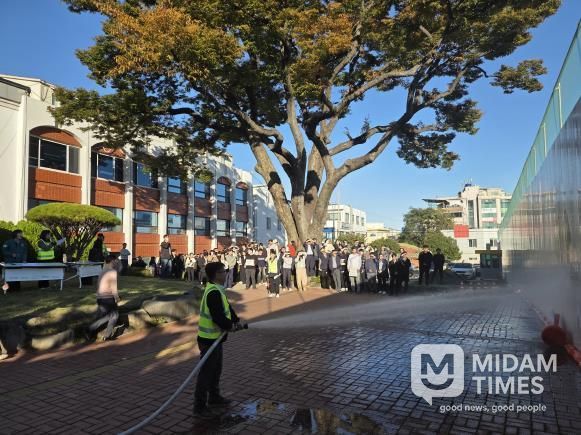 미담타임스 김교환 기자 | 남해군은 지난 28일 군청 광장에서'화재의 예방 및 안전관리에 관한 법률'에 따라 남해소방서와 합동으로 공공기관 소방훈련을 실시했다.