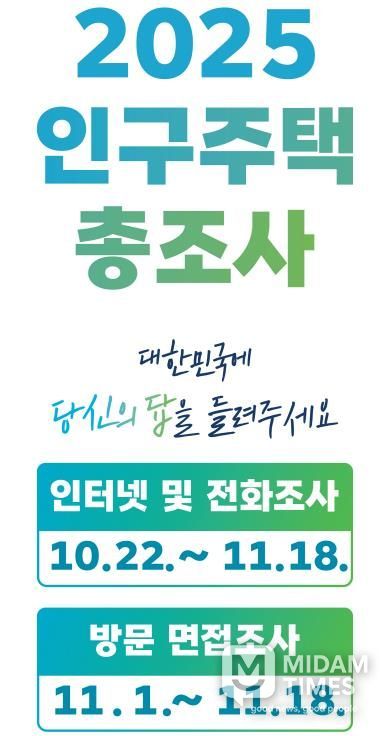 미담타임스 김준완 기자 | 2025 인구주택총조사가 진행되고 있는 가운데, 통계조사원을 사칭하는 경우가 있어 주의가 요구된다.