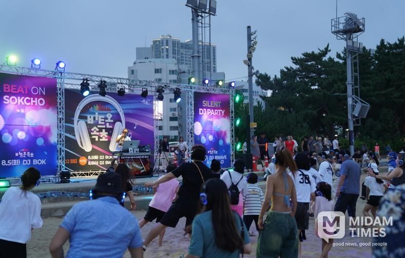 ‘비트온(BEAT ON) 속초’는 올해 8월 4일부터 6일까지 3일간 진행됐으며, 파워 유튜버 ‘춤추는 곰돌’과 함께한 K-POP 랜덤댄스, 속초시 야간관광 대표 브랜드 ‘빛의 바다 속초’ 미디어아트, 무선 헤드폰을 활용한 무소음 DJ파티 등으로 구성됐다.