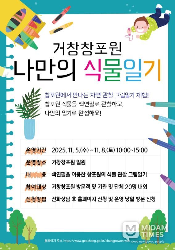 미담타임스 김교환 기자 | 거창창포원은 ‘국화 예술속 정원산책’ 행사 기간 중앙광장에서 방문객을 대상으로 체험 프로그램인 ‘나만의 식물일기’를 운영한다.