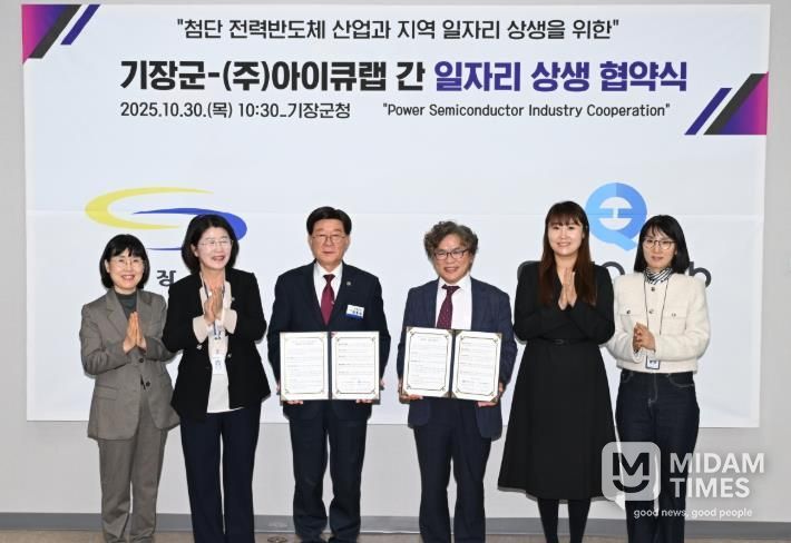 미담타임스 김교환 기자 | 기장군은 30일 전력반도체 분야 첨단 기술기업인 ㈜아이큐랩과 ‘지역 일자리 상생 협약’을 체결하고, 지역 일자리 창출에 박차를 가한다고 밝혔다.