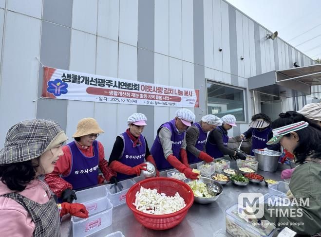 미담타임스 정주환 기자 | 생활개선광주시연합회는 지난 30일 ‘이웃사랑 김치 나눔 행사’를 열고 지역 내 취약계층 220가구에 정성껏 담근 물김치를 전달했다.