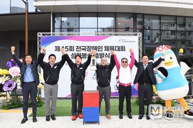 미담타임스 김교환 기자 | 부산 동래구는 10월 31일 오전 10시 45분, 동래구청 정문 마당에서 제45회 전국장애인체육대회 성화 봉송 출발을 기념하는 다양한 행사를 개최했다.