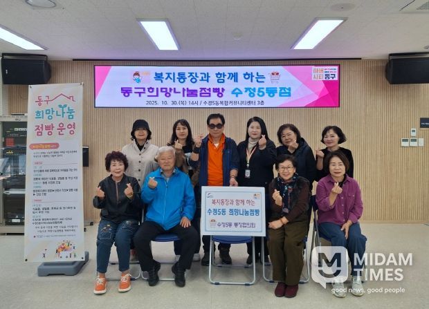 통장협의회 하윤식 회장은 “통장들의 정성을 모아 마련한 후원금으로 이번 희망나눔점빵을 운영하게 되어 매우 기쁘다”며, “수정5동 통장협의회는 앞으로도 지역 내 나눔문화 확산에 힘쓰고, 동 찾아가는 복지팀과 협력하여 우리동네 어려운 이웃을 발굴·지원하기 위해 적극 노력하겠다”고 밝혔다.
