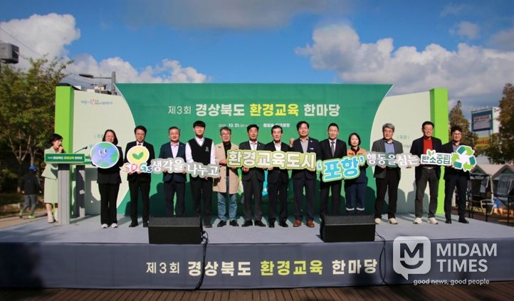 미담타임스 김준완 기자 | 포항시는 지난달 31일 포항철길숲 오크광장에서 시민 400여 명이 참석한 가운데 ‘생각을 나누고 행동을 심는 환경교육도시 포항’을 주제로 ‘2025년 제3회 경상북도 환경교육한마당’을 성황리에 개최했다.