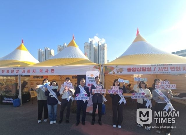 미담타임스 김교환 기자 | 김해시 농업정책과는 10월 31일 제41회 진영단감축제 행사장에서 농업정책과 직원들이 참여한 가운데 “찾아가는 청렴실천 캠페인”을 전개했다고 밝혔다.