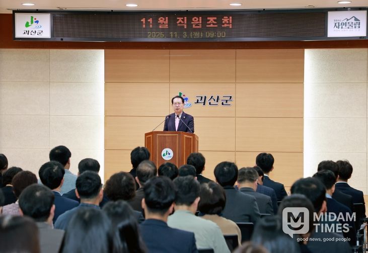 미담타임스 정인화 기자 | 충북 괴산군은 3일 군청 대회의실에서 11월 직원조회를 열고, 올해 지역축제의 성과와 연말까지 중점 추진할 과제들을 공유했다.
