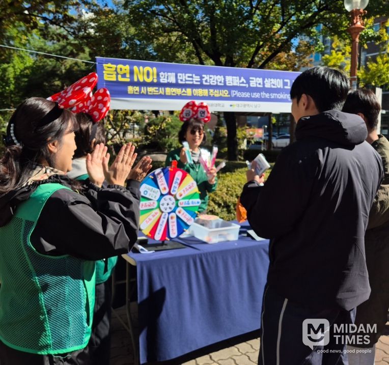 남구보건소는 10월 한 달 동안 대명2동과 봉덕2동 새마을부녀회로 구성된 금연정책 주민홍보단인 ‘우리마을누비단’과 함께 대구교육대학교, 영남이공대학교 등 관내 대학교에서 신종담배 유해성 인식 확산 캠페인을 진행했다.