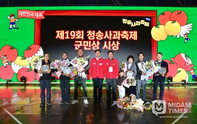 또한 축제 기간 중 열린 사과왕 시상식과 군민상 시상식이 축제의 의미를 한층 더했다. 사과왕 시상식에서는 ▲사과왕 조용태(안덕면) ▲우수상 김창율(부남면) ▲장려상 정무상(현서면) ▲황금진 도재범(안덕면) 씨가 수상의 영예를 안았으며, 군민상 시상식에서는 ▲임윤기(주산지리 이장) ▲권오영(신기2리 이장) ▲남법식(현동면체육회 부회장) ▲김영조(부남면 지역사회보장협의체 민간위원장) ▲권영선(바르게살기운동청송군협의회 회장) ▲권태욱(명성 TNS 전 대표) 씨가 수상했다.