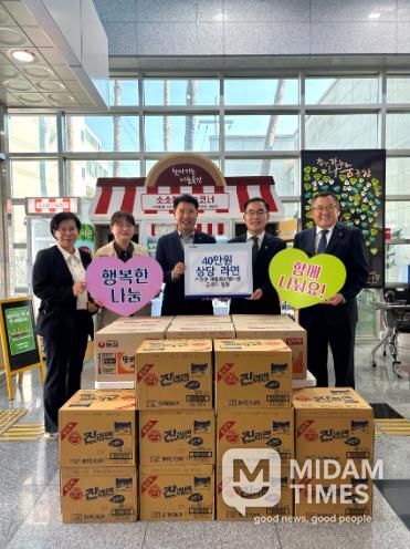 미담타임스 김교환 기자 | 거창군 거창읍 지역사회보장협의체은 지난 4일 거창군 재활용선별시설 근로자 16명 과 관리직원 2명이 거창읍 공유냉장고 ‘찾아가는 나눔곳간’에 40만 원 상당 라면을 기부했다고 밝혔다.
