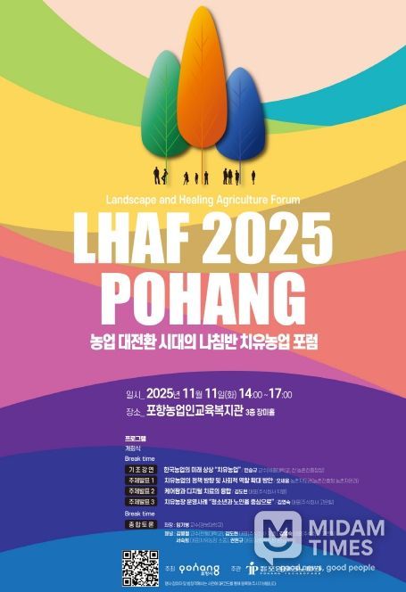 미담타임스 김준완 기자 | 포항시는 오는 11일 포항농업인교육복지관 3층 장미홀(북구 흥해읍 성곡서로 32번길 7)에서 ‘농업 대전환 시대의 나침반, 치유농업 포럼’을 개최한다.