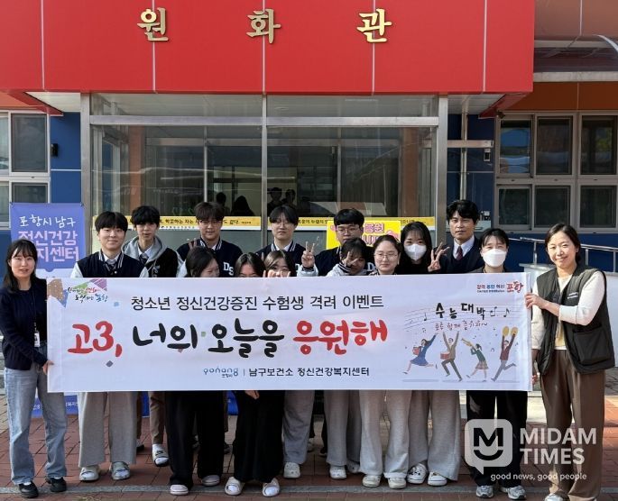 미담타임스 김준완 기자 | 포항시 남구정신건강복지센터는 4일부터 대학수학능력시험을 앞둔 수험생들의 긴장과 불안을 완화하고 마음의 안정을 돕기 위해 격려 이벤트를 운영하고 있다.