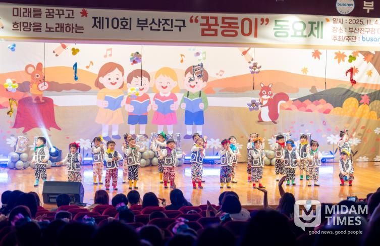 미담타임스 김교환 기자 | 부산진구는 4일 부산진구청 대강당에서 어린이집 영유아와 보육교직원 및 학부모 400여 명이 참석한 가운데 ‘2025년 제10회 부산진구 꿈동이 동요제’를 개최했다고 밝혔다.