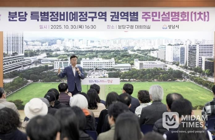 미담타임스 정주환 기자 | 성남시는 분당 신도시 정비사업의 원활한 추진과 주민과의 소통 강화를 위해 오는 11월 7일(금) 오후 3시 분당구청 대회의실에서 ‘분당 특별정비예정구역 2차 권역별 주민설명회’를 개최한다.