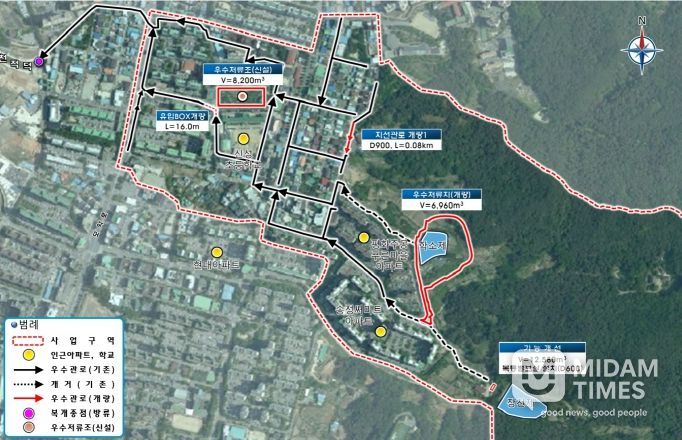 해당 지역은 지난 2020년 8월 8일 내린 시간당 최대 35.1mm의 집중호우로 인해 2.0㏊의 면적과 주택 7동의 침수피해가 발생한 지역으로, 시는 반복적인 피해를 예방하기 위해 지난 2021년 행정안전부의 ‘우수유출저감시설 설치 공모사업’에 신청해 이듬해 신규 사업지구에 선정됐다.
