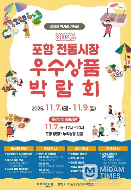 미담타임스 김준완 기자 | 포항시는 오는 7일부터 9일까지 사흘간 영일대해수욕장 일원에서 ‘포항 전통시장 우수상품 박람회’를 개최한다.