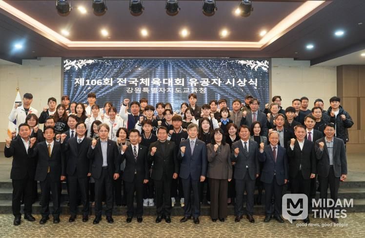 미담타임스 정인화 기자 | 강원특별자치도교육청은 11월 5일 춘천 스카이컨벤션웨딩홀에서 전국체육대회 입상선수 및 지도자, 학교장을 대상으로 ‘제106회 전국체육대회 유공자 간담회’를 개최했다.