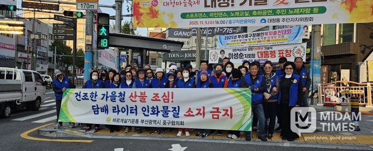 미담타임스 김교환 기자 | 바르게살기운동 중구협의회(회장 배경란)는 11월 5일 대청사거리에서 회원 40여 명과 함께 ‘가을 행락철 산불 예방’을 내용으로 홍보 캠페인 활동을 전개했다.