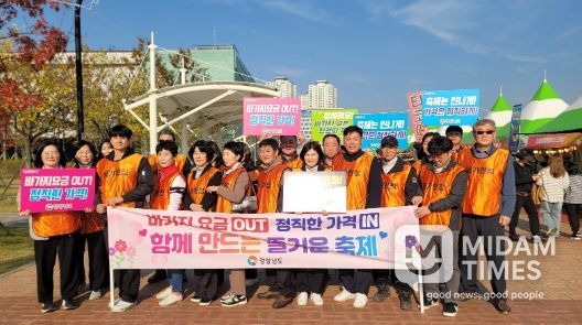 미담타임스 김교환 기자 | 경상남도는 5일 제25회 마산가고파국화축제장에서 ‘바가지요금 OUT! 정직한 가격 IN! 즐거운 축제’를 슬로건으로 바가지 요금근절을 위한 민관 합동 점검 및 캠페인을 벌였다.